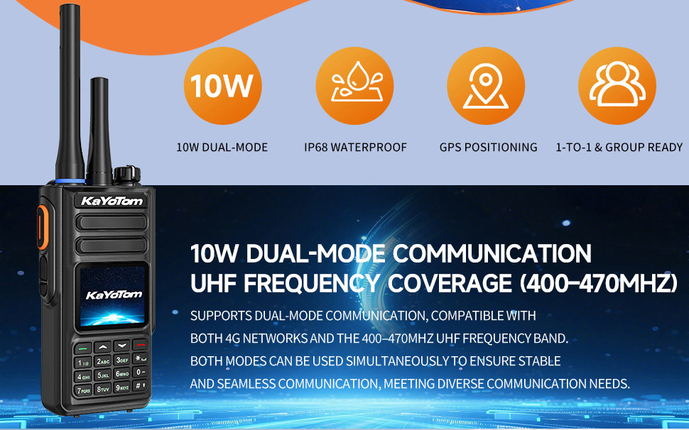 Hybrid Communication (4G + UHF): Use 4G LTE for unlimited worldwide range and UHF Analog for reliable peer-to-peer talk in network-blind spots like tunnels or forests.