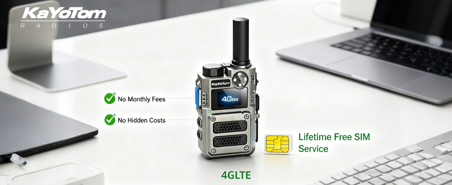 KaYoTom M12 Global Walkie Talkie - Unlimited Range 4G LTE Radio, Lifetime Free National Use, No Monthly Fee, All-Metal Build, AES-256 Encryption, Integrated UV/IR/LED Light
